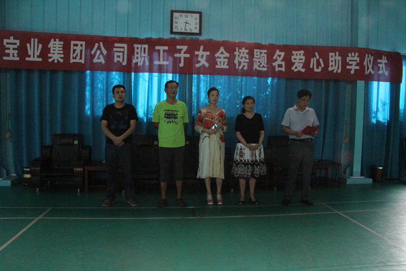 2015年8月27日下午,寶業(yè)(集團(tuán))公司組織開展了2015年“愛心助學(xué)”活動(dòng),集團(tuán)公司副總經(jīng)理譚照明先生、代均康先生、財(cái)務(wù)總監(jiān)黃曉琴女士和房地產(chǎn)總經(jīng)理汪軍先生出席了本次活動(dòng)。根據(jù)公司“愛心助學(xué)”獎(jiǎng)勵(lì)制度對(duì)15名考入本科院校的職工子女進(jìn)行了獎(jiǎng)勵(lì),并將助學(xué)獎(jiǎng)金發(fā)到了這15名的職工子女手中。