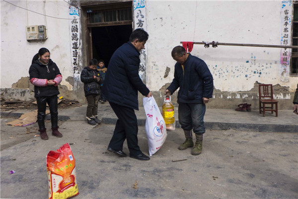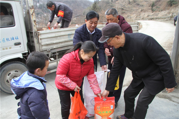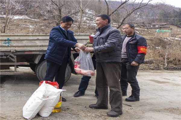 2018年2月7日,安康寶業(yè)公司扶貧工作組響應(yīng)市工商聯(lián)“萬企幫萬村”的號召,與漢濱區(qū)中原鎮(zhèn)麻廟村結(jié)為幫扶對象,在春節(jié)來臨之際他們冒著嚴(yán)寒和冰雪路滑,給該村47戶貧困戶送去了米面糧油和大肉。