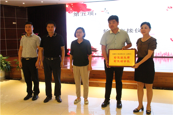會(huì)議最后舉行了市工商聯(lián)企業(yè)家副主席、副會(huì)長(zhǎng)輪值交接牌儀式。