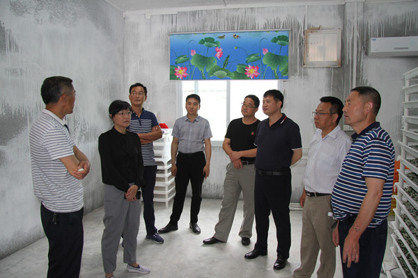 隨后一行人又前往寶業(yè)公司扶貧基地麻廟村進行察看,首先察看了500畝桑園,桑園長勢一片大好,為春蠶的飼養(yǎng)提供有力保障。然后來到合作社養(yǎng)蠶工廠查看春蠶飼養(yǎng)情況,第一批已吐絲結繭即將下架,同時查看了寶業(yè)公司為合作社扶持的現代化蠶具設備,對寶業(yè)公司為麻廟村的高要求,高起點的產業(yè)扶持給予肯定。